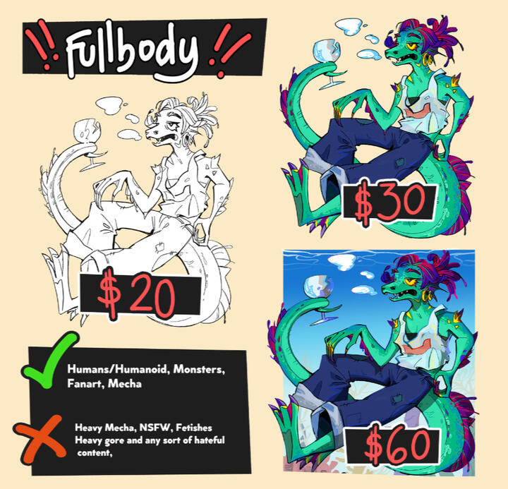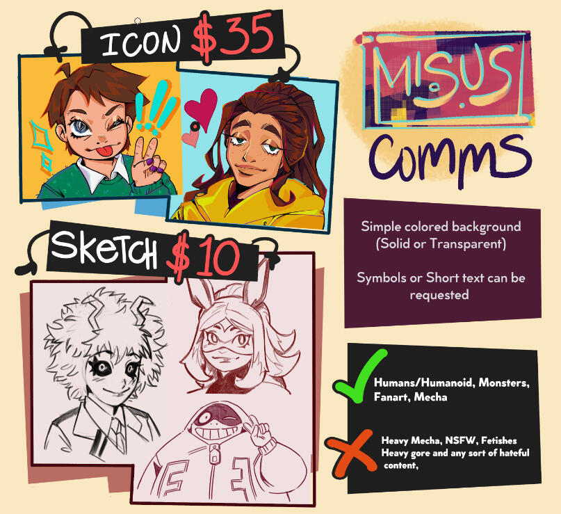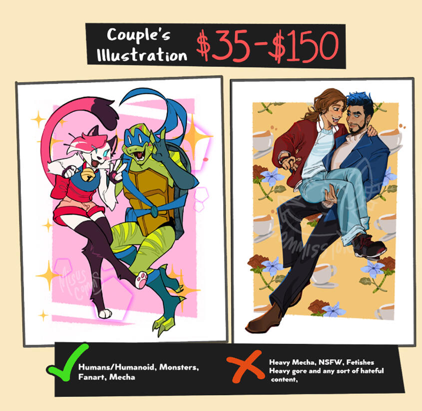 Reminder: If you want a quick commission, I am not the artist for you. I work two day jobs and I only have a few hours a day for doing comm work and personal activities. Regardless, I will always do my absolute best to finish a piece in month's time. This my only way to save money for myself since almost all of my salary goes to helping out my family. Thank you for understanding!